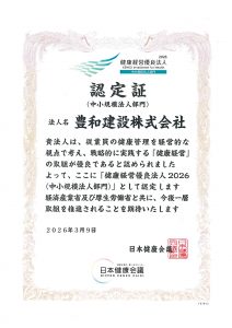 今年も弊社では「健康経営優良法人2026(中小規模法人部門)」を申請し認定を